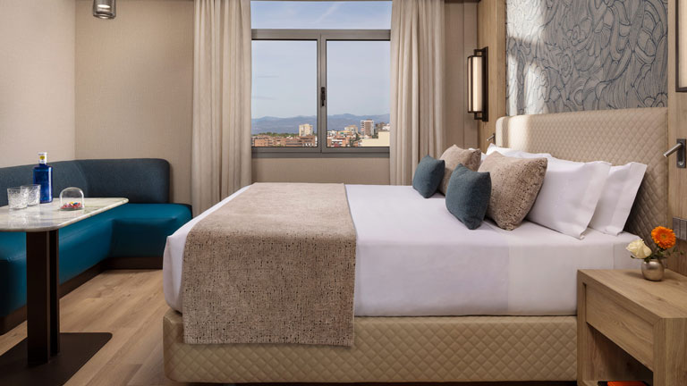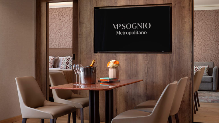 VP SOGNIO Metropolitano is a modern 4-star hotel that combines comfort with “Welcoming Luxury.” It features 102 rooms across seven floors, ranging from standard to suites with terraces, all equipped with high-speed Wi-Fi, Nespresso machines, minibars, air conditioning, and premium bath amenities such as DAMANA or L’Occitane. Guests can enjoy facilities such as private parking with EV charging points, a varied breakfast buffet, as well as services like 24-hour reception, concierge, room service, and laundry.